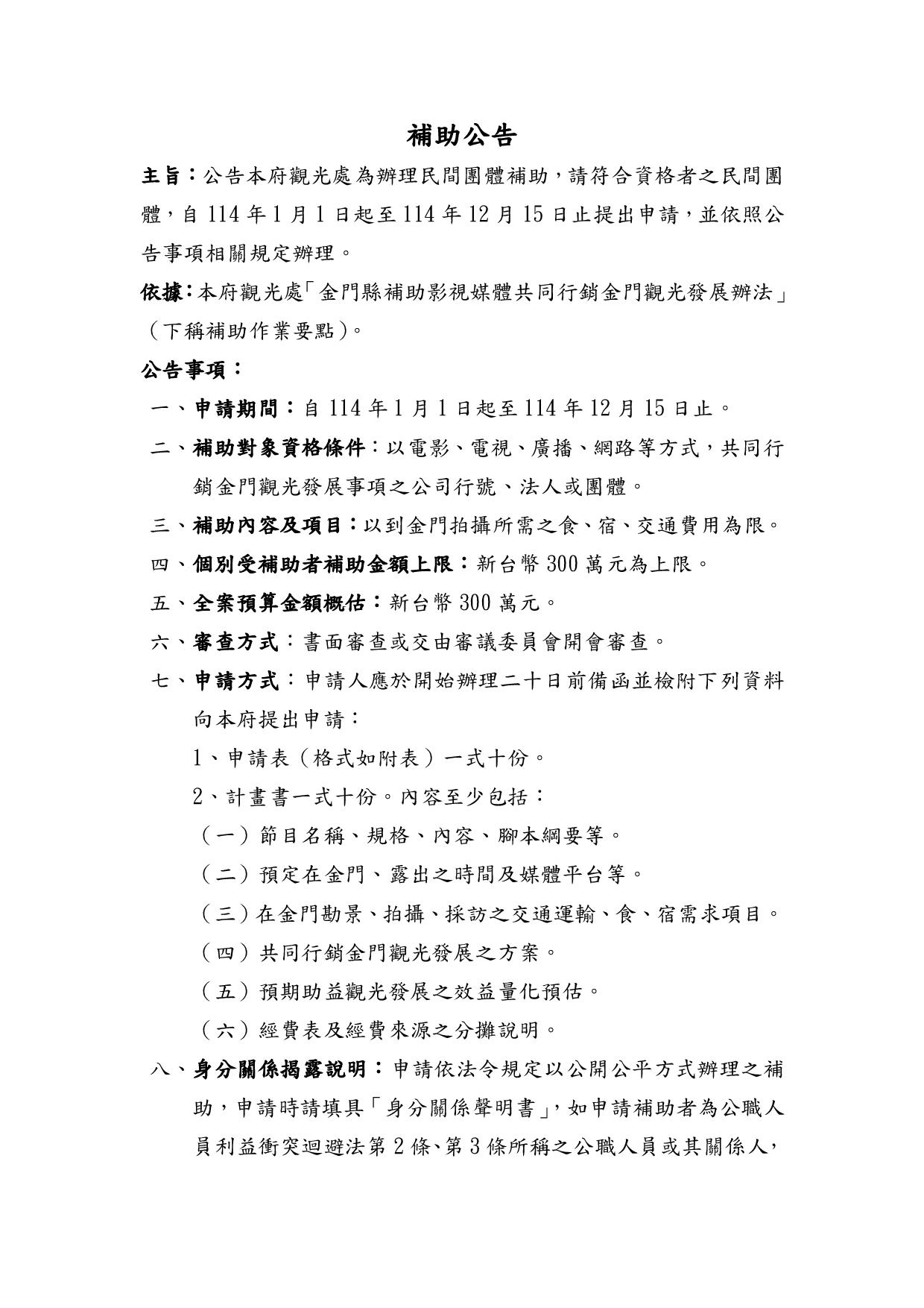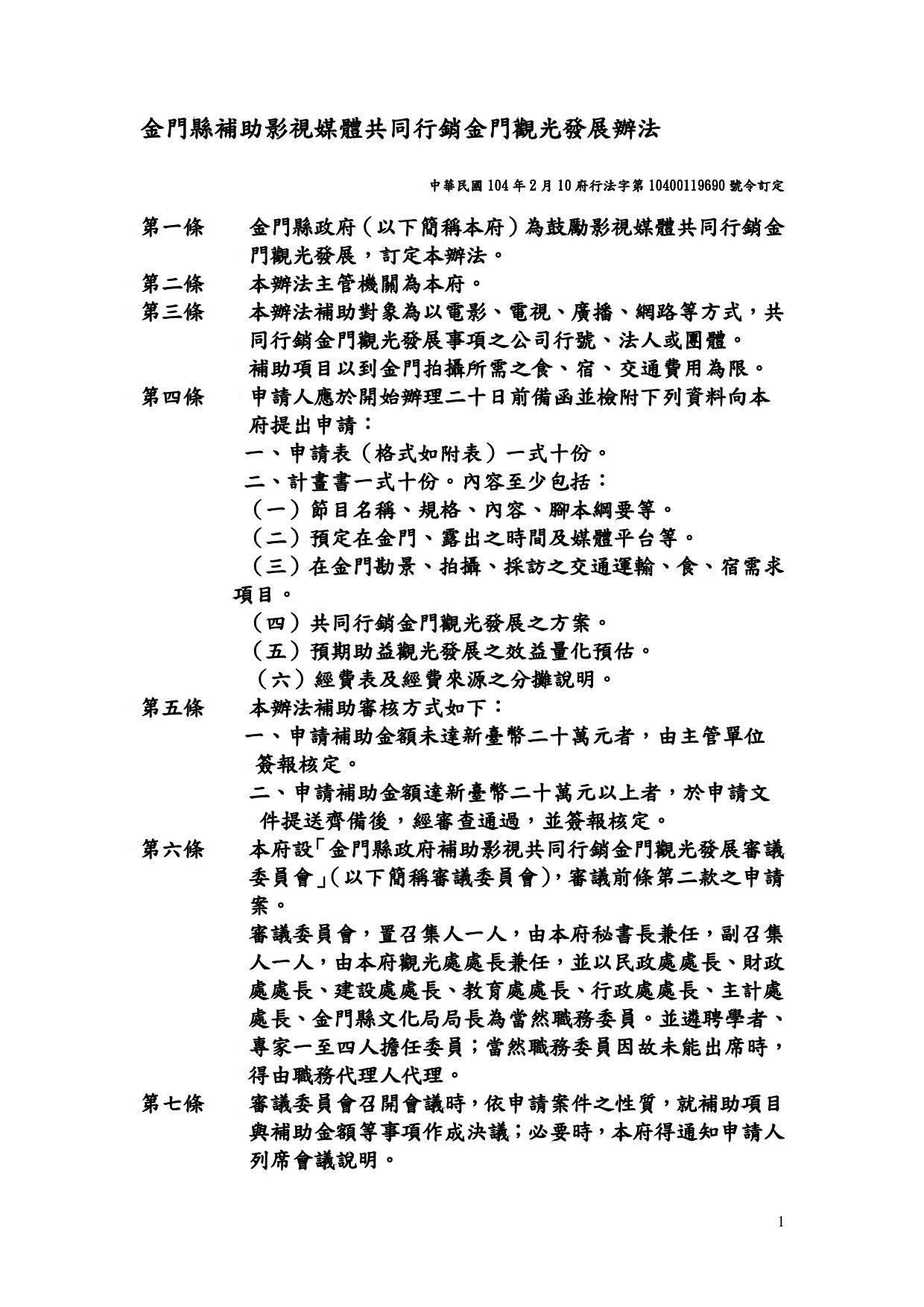 金門縣補助影視媒體共同行銷金門觀光發展辦法