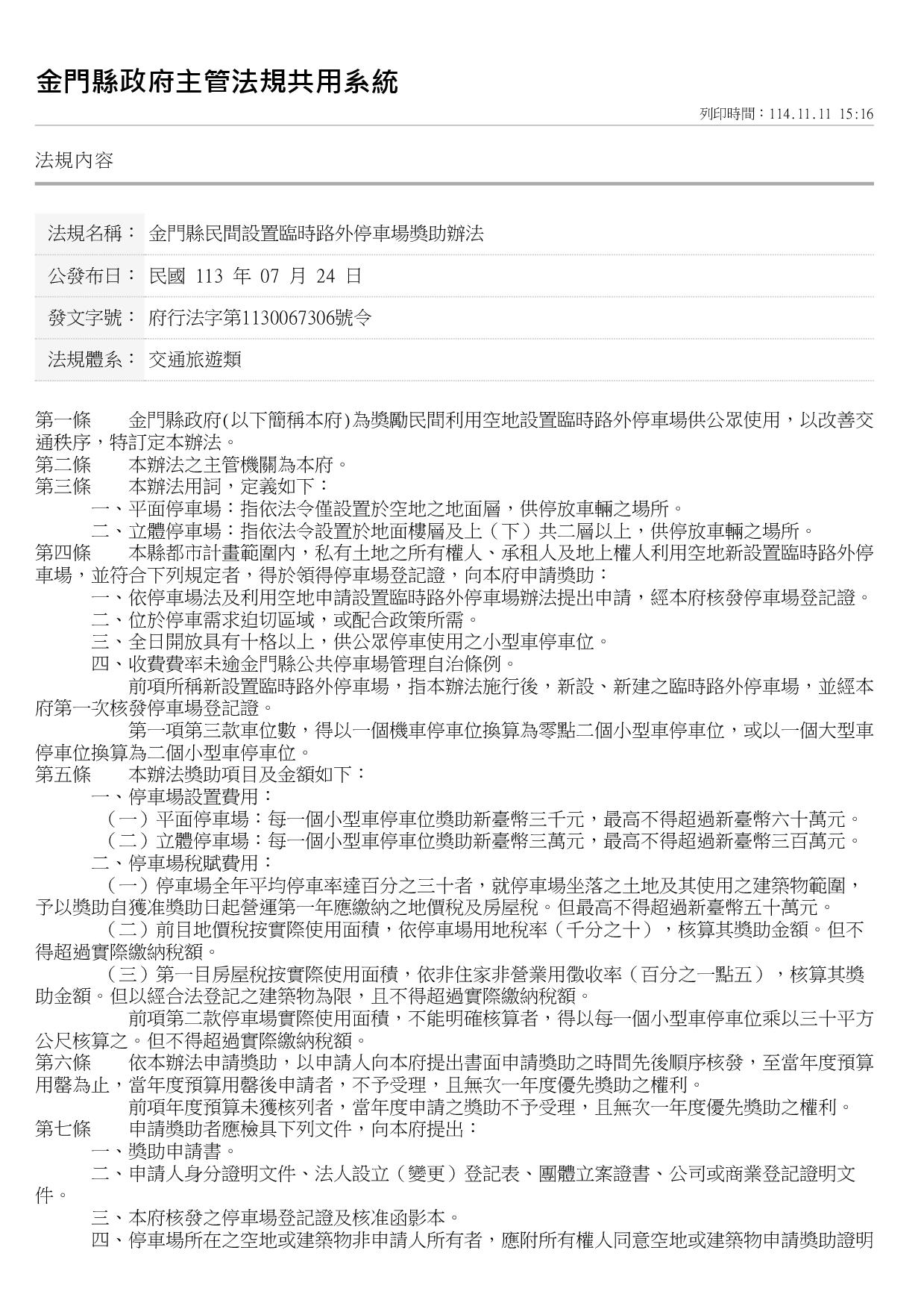 依據:金門縣民間設置臨時路外停車場獎助辦法